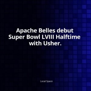 While this was their inaugural Super Bowl performance, the Apache Belles are no strangers to national and international stages. Their extensive resumé includes twelve appearances in the Macy's Thanksgiving Day Parade, numerous Cotton Bowls and Sugar Bowls, performances at presidential inaugurations, and multiple Dallas Cowboys halftime shows.